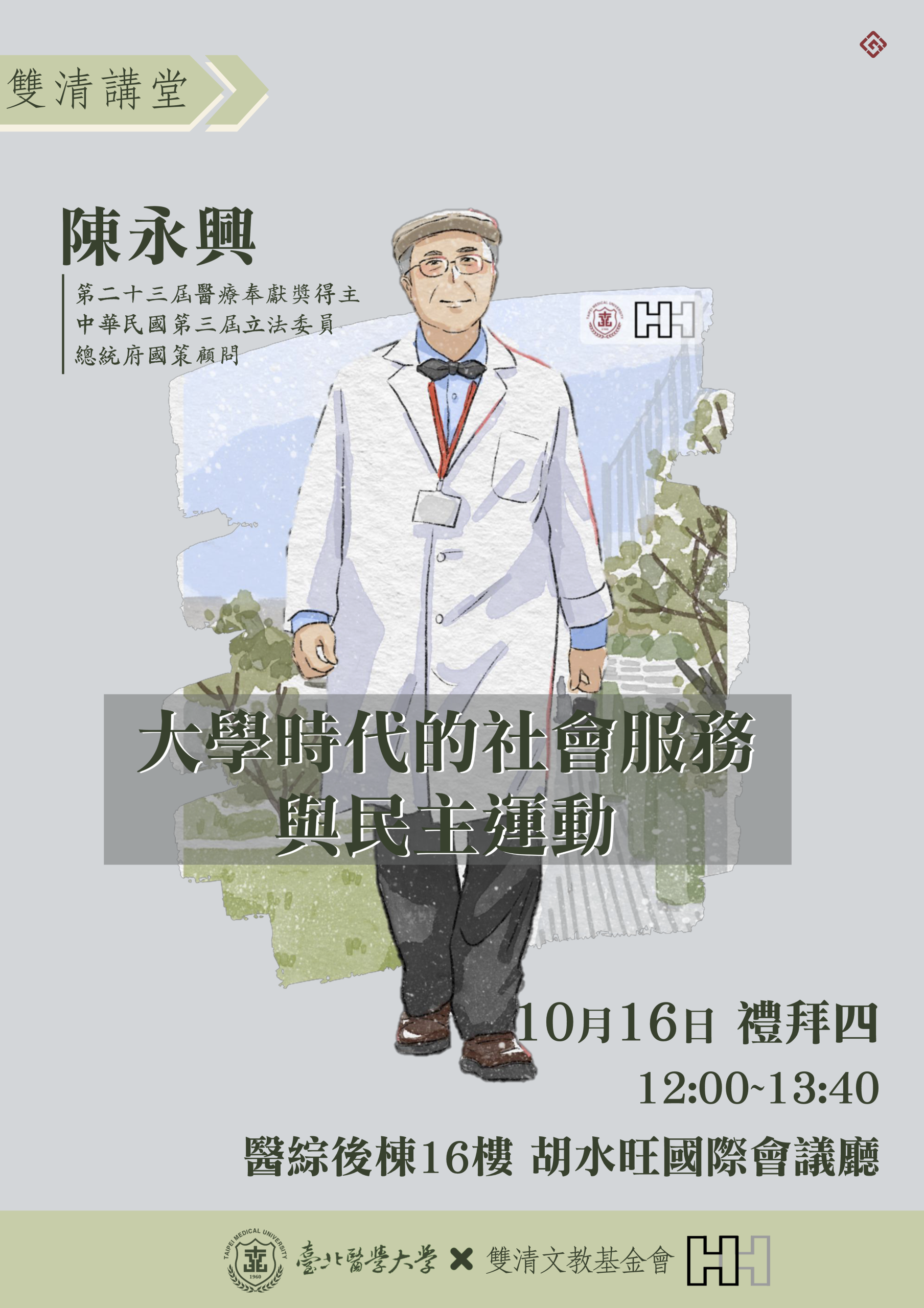 講 題:〈一個醫療工作者的養成與社會關懷〉